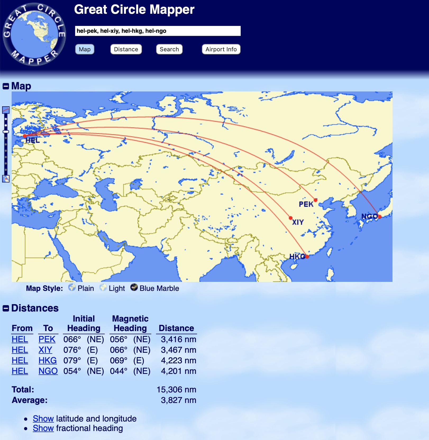 Great Circle Mapper Distance