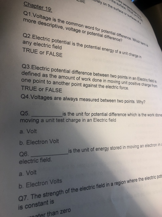 Solved LOE ely ely one was Chapter 19 Q1. Voltage is the | Chegg.com