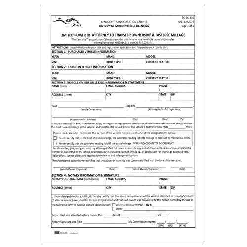 KY Limited Power of Attorney to Transfer Ownership & Disclose